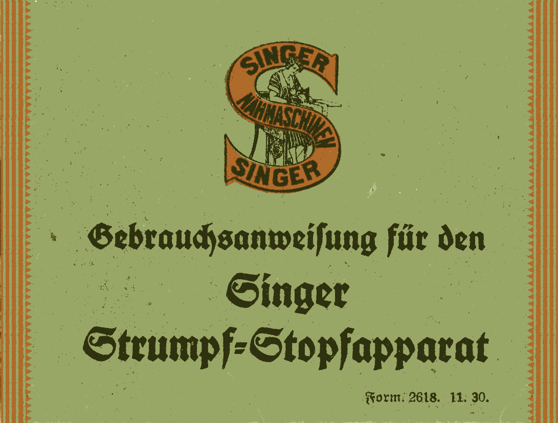 „Der Singer Strumpf-Stopfapparat findet besonders bei Singer Nähmaschinen Verwendung. Er ist der beste Apparat zum Halten eines Strumpfes, um diesen mit der Nähmaschine an jeder Stelle stopfen zu können.“ (Aus der Gebrauchsanweisung)