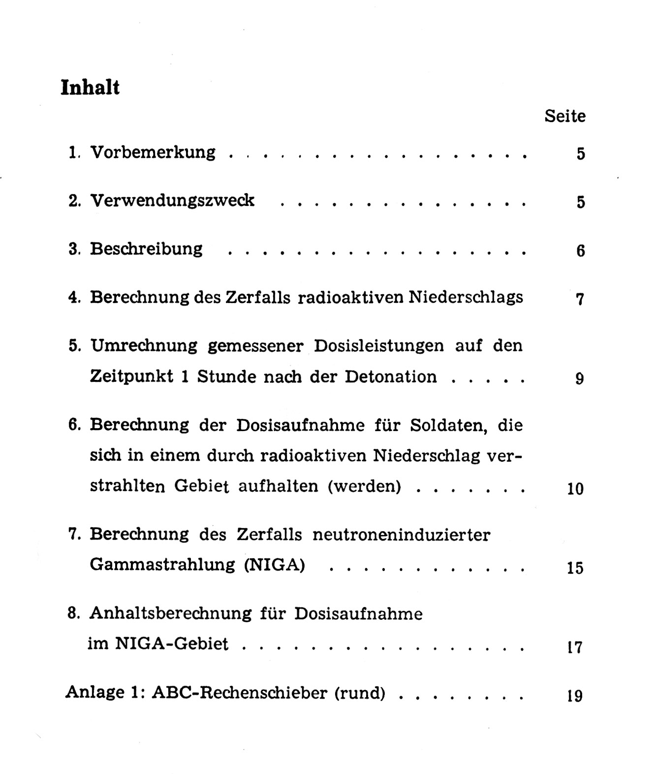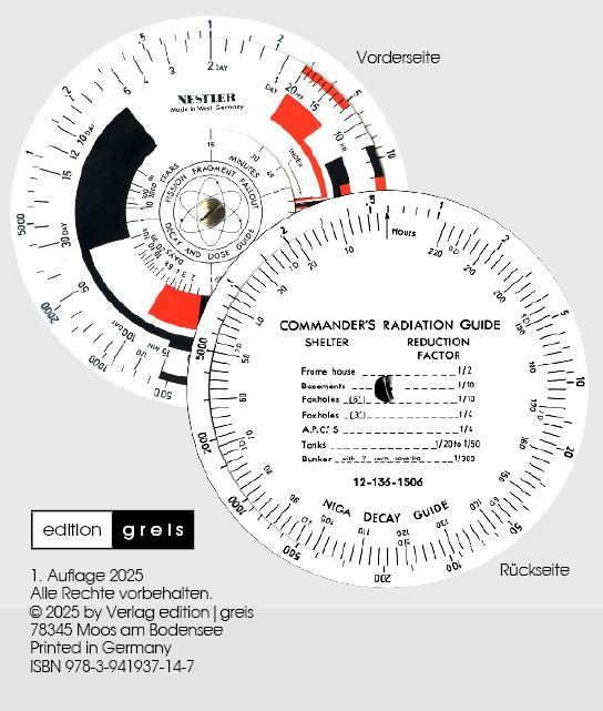 Diese Neuauflage der Gebrauchsanweisung von Anfang der 1960er Jahre soll Besitzern eines NESTLER-ABC-Rechenschiebers deren Bedienung bzw. Berechnungen damit erleichtern bzw. ermöglichen. Der in der Gebrauchsanweisung beschriebene »ABC-Rechenschieber« wurde in Form einer Rechenscheibe (siehe Bild unten rechts) zur Einführung in das Heer der damaligen Bundeswehr verfügt. Der als Bausatz erhältliche »ABC-Rechenschieber« und andere Strahlenschutz-Rechenscheiben sind ausführlich im Buch »Rechenscheiben im Kalten Krieg« beschrieben.