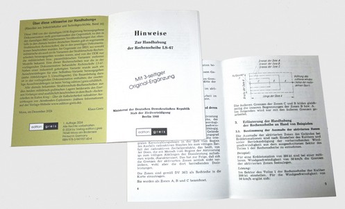 Diese 1968 vom »Ministerrat der DDR« herausgegebene Dokumentation beschreibt den Aufbau und die Verwendung sowie die Herstellung der Selbstbau-Variante der »Rechenscheibe LS-67«. Nebenbei: Diese und andere Strahlenschutz-Rechenscheiben sind ausführlich im Buch »Rechenscheiben im Kalten Krieg« beschrieben.