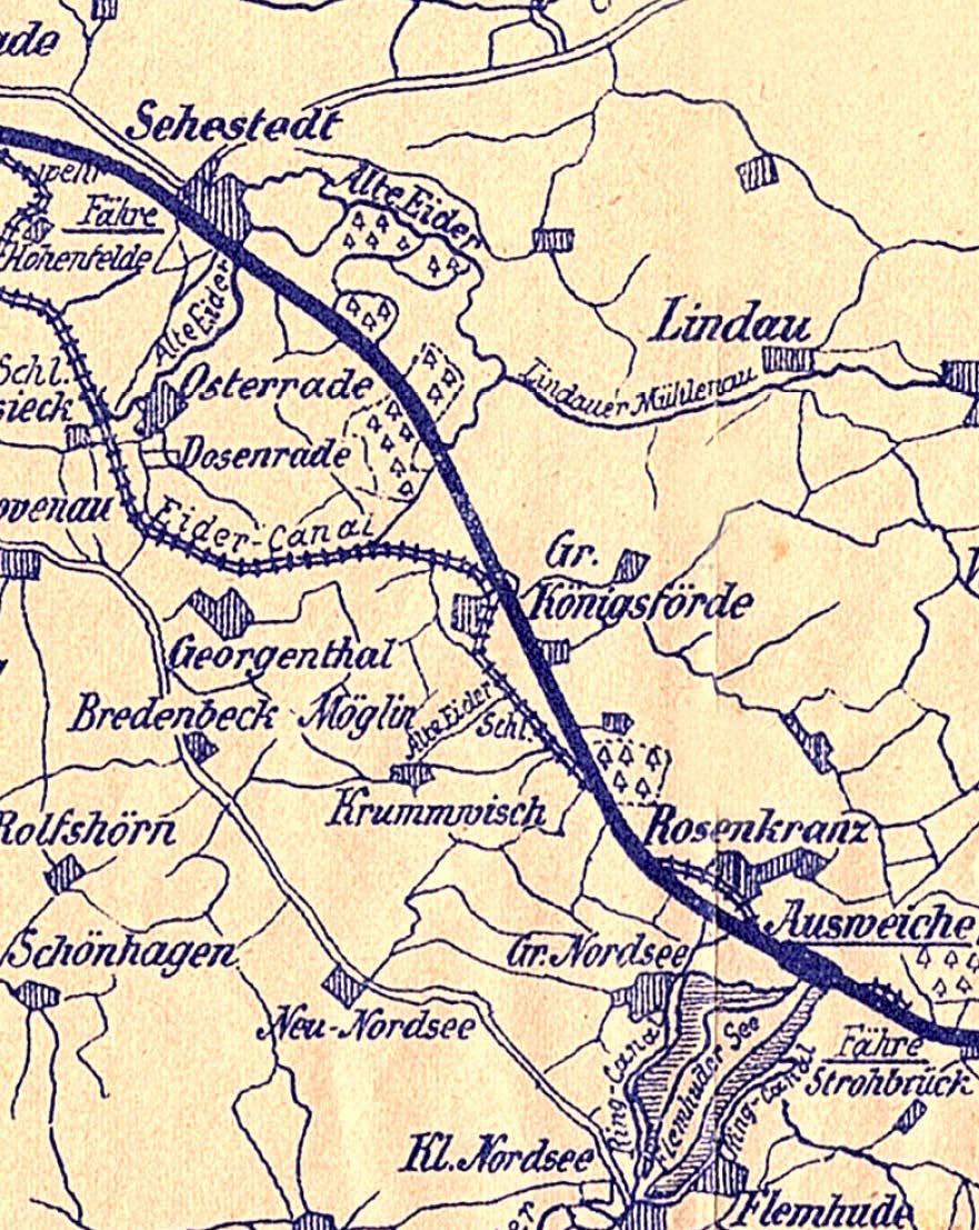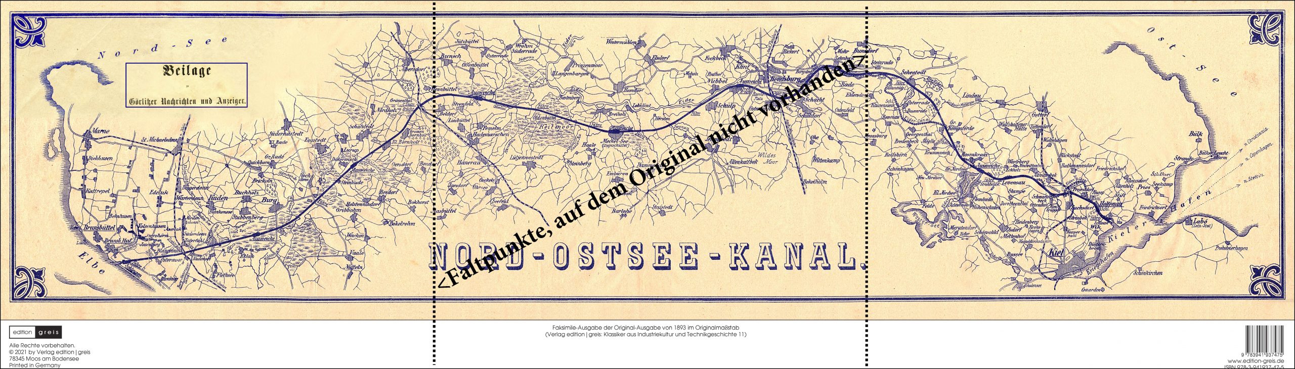 Diese Karte (Bild 1) zeigt als Faksimile-Druck im Originalmaßstab den historischen Verlauf der Kanal-Trasse aus dem Jahr 1893 von Brunsbüttel nach Holtenau (Ausschnitte Bilder 2 bis 6). Wie die meisten Karten aus jener Zeit ist auch diese Karte nicht genordet. Sie wurde als Beilage der damaligen Zeitung »Görlitzer Nachrichten und Tagblatt« gerhausgegeben.